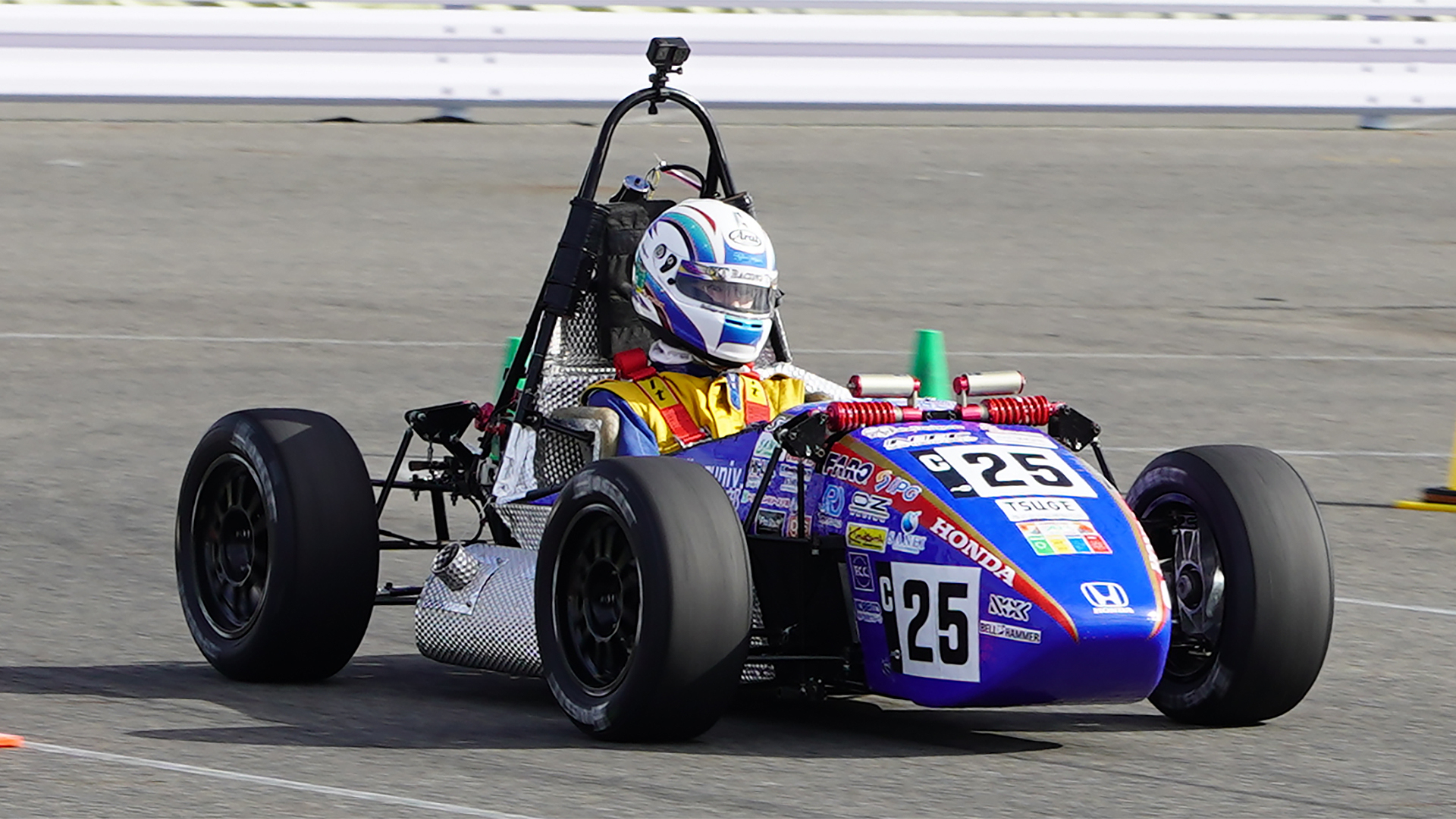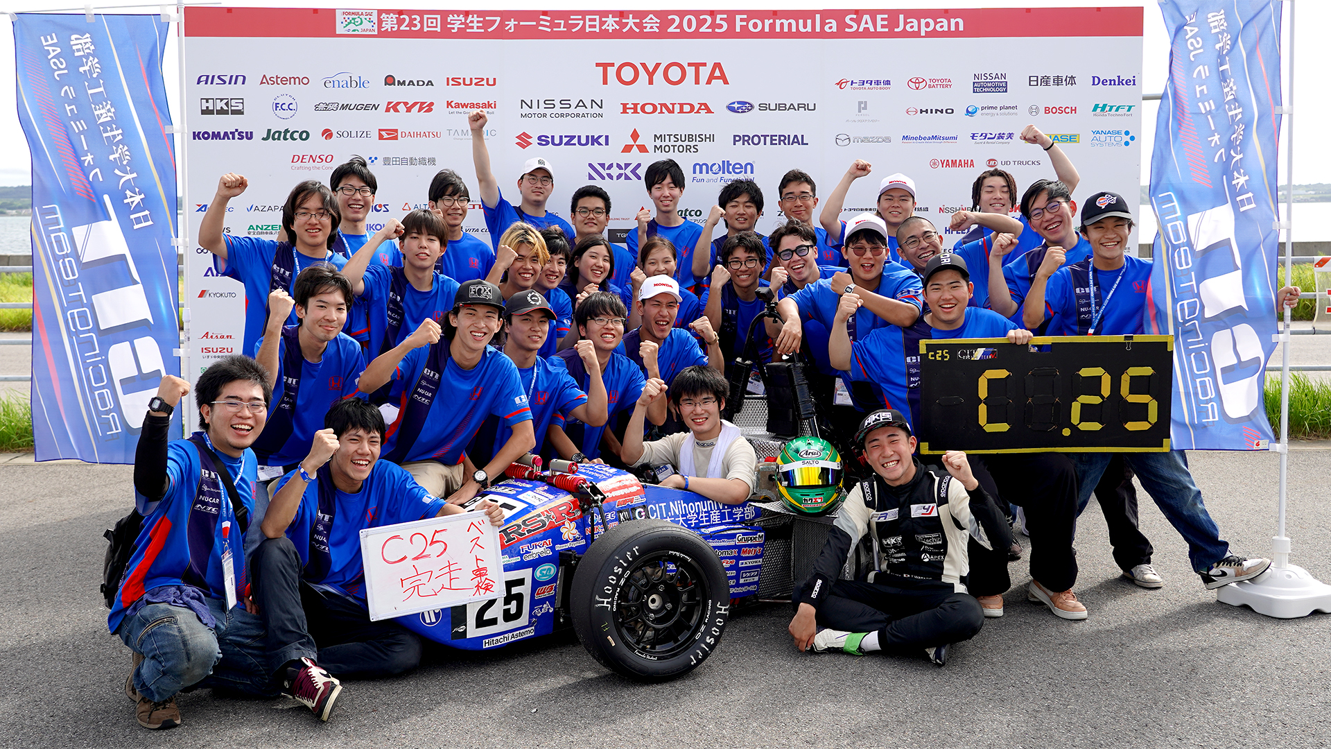 NU-CARが支援する学生サークル“フォーミュラJSAE”は、自動車技術会主催の第23回学生フォーミュラ日本大会2025のICVクラスに出場し、過去最高成績の総合18位と健闘しました。さらに、“初回の技術車検で最も指摘件数が少なく車検を通過できたチーム”に授与される「ベスト車検賞(第2位)」を受賞しました。本大会は、2025年9月8日から13日にAichi Sky Expoで開催され、海外チーム11校を含む86校(ICVクラス61校、EVクラス25校)が出場した学生フォーミュラカーの競技会で、約2万人が来場したと見込まれます。最終審査のエンデュランス(ICVクラス第9位)走行の様子(car#25)は、公式YouTube配信をご視聴ください。